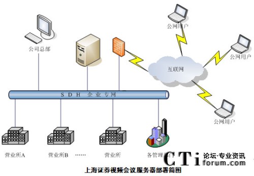 上海證券一直以來(lái)都重視IT在企業(yè)發(fā)展中的重要作用,公司成立了信息技術(shù)總部專(zhuān)門(mén)負(fù)責(zé)公司信息化平臺(tái)的建設(shè)與維護(hù)。2009年4月上海證券視頻會(huì)議項(xiàng)目進(jìn)入最終選型階段,經(jīng)過(guò)多次測(cè)試和評(píng)比,最終選用音視頻效果好,運(yùn)行穩(wěn)定,成熟度高的北京威速科技有限公司視頻會(huì)議產(chǎn)品V2 Conference視頻會(huì)議系統(tǒng)。2009年6月完成了項(xiàng)目實(shí)施部署。