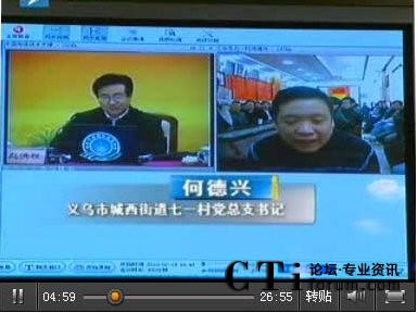 CTI論壇(ctiforum)2月25日消息(記者 潘婷):新春佳節(jié),浙江省委書(shū)記趙洪祝通過(guò)中國(guó)電信遠(yuǎn)程教育網(wǎng)絡(luò)視頻與部分村支部書(shū)記、村官代表進(jìn)行了遠(yuǎn)程互動(dòng),探討農(nóng)村管理的同時(shí)向基層村干部拜年、慰問(wèn)。