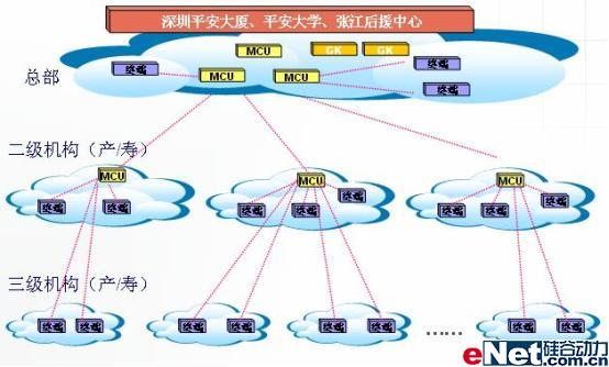 平安保險公司的視頻會議系統(tǒng)覆蓋公司產(chǎn)險、壽險、信托、銀行等各分支公司。從99年起,平安保險的視頻會議系統(tǒng)建設(shè)就未曾停滯過,至今年7月,已經(jīng)在產(chǎn)險和壽險兩大公司內(nèi)覆蓋至全國各地的三級機(jī)構(gòu),其他分公司也已經(jīng)覆蓋至全過二級機(jī)構(gòu)。公司全部使用POLYCOM視頻會議系統(tǒng)構(gòu)架其主要會議室,終端總數(shù)已超過四百臺,多點會議服務(wù)器(MCU)四十余臺,分布全國各地以及平安保險公司全球的各樞紐公司。預(yù)計至今年年底,平安保險的POLYCOM視頻會議系統(tǒng)將成為國內(nèi)最大的企業(yè)級視頻會議應(yīng)用系統(tǒng)。