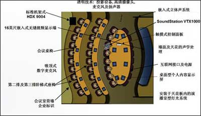 設(shè)計(jì)的獨(dú)具匠心之處還在于投影設(shè)備和攝像頭采用了分離的隱密安裝方式,因而所有與會(huì)者都完全呈現(xiàn)在屏幕上,不受任何限制地與各方交流。另外,由于采用整體環(huán)境設(shè)計(jì),從地面到天花板均采用預(yù)制結(jié)構(gòu)和現(xiàn)場安裝,絕大多數(shù)情況下,系統(tǒng)安裝不需要特別的許可證,同時(shí)會(huì)議室的全部設(shè)施也可以隨企業(yè)遷址而重新安裝。