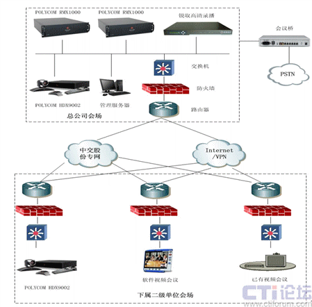 因為集團的部分二級單位在前期已經(jīng)構(gòu)建了標清的視頻會議系統(tǒng),而且使用的視頻終端的類型非常多,有Polycom VS系列終端、Polycom