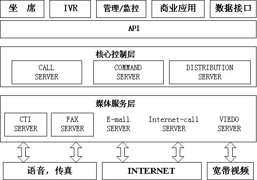 億陽(yáng)信通ICSYS智能呼叫中心系統(tǒng)采用媒體抽象的設(shè)計(jì)思想,通過(guò)媒體服務(wù)層屏蔽不同媒體的差異,允許以一種統(tǒng)一的消息處理機(jī)制來(lái)定義呼叫,把復(fù)雜的通道處理過(guò)程對(duì)客戶及服務(wù)代表完全屏蔽,實(shí)現(xiàn)媒體無(wú)關(guān)性。這種結(jié)構(gòu)使系統(tǒng)具有良好的擴(kuò)展能力,可根據(jù)具體的應(yīng)用場(chǎng)景增加或減少媒體;當(dāng)新的媒體出現(xiàn)時(shí),只需開(kāi)發(fā)對(duì)應(yīng)的媒體服務(wù)器,系統(tǒng)核心層不需作任何修改即可支持新的媒體。