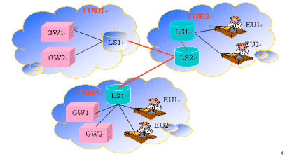 一個(gè)IT管理域中的EU是本ITAD中一個(gè)有效客戶,它們希望完成通向電話網(wǎng)的呼叫,并且需要訪問網(wǎng)關(guān)。在一次呼叫中,EU可以是一個(gè)ITAD的客戶,在下一次呼叫中又是另一個(gè)ITAD的客戶。