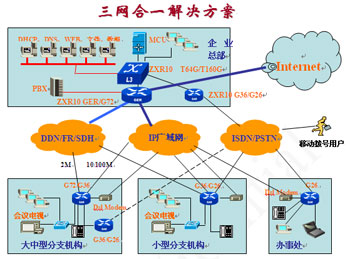 中興通訊具有豐富的數(shù)據(jù)、視訊、語音網(wǎng)關等設備,能提供端到端的語音、數(shù)據(jù)、視訊三網(wǎng)合一解決方案。企業(yè)內(nèi)部電話/視訊長途走自己的數(shù)據(jù)網(wǎng),節(jié)約費用;組成語音VPN/視訊 VPN,多種手段保證Qos。