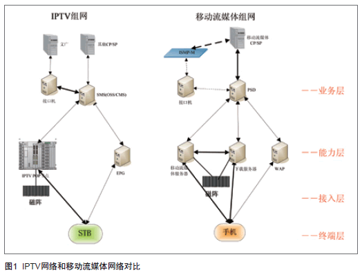 如圖1所示,左邊為IPTV網(wǎng)絡(luò),右邊為移動流媒體網(wǎng)絡(luò)。