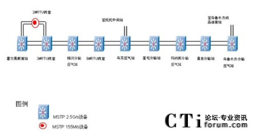 STM-1 緊湊型設備ZXMP S325作為接入層接入骨干傳輸層。在烏魯木齊分輸壓氣站預留兩個2.5G光口,與西部管道站烏魯木齊成品油首站互聯(lián),在烏蘇壓氣站預留兩個2.5G光口,與阿獨線獨山子末站互聯(lián),從而實現(xiàn)中石油骨干傳輸網的西向延伸;魻柟故渍九渲靡惶鬃泳W/網元管理系統(tǒng),來實現(xiàn)對中興傳輸設備的統(tǒng)一管理和維護,并在霍爾果斯首站和烏魯木齊分輸壓氣站配置本地維護終端(LCT),以實現(xiàn)對本地設備的日常管理和維護。