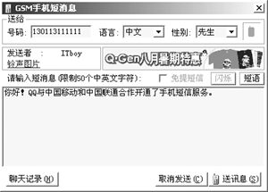 目前IM與各種移動終端設(shè)備的結(jié)合也越來越多。使用QQ向手機發(fā)送短信需要手機開通移動QQ服務(wù),單擊對方頭像圖標(biāo),在打開的快捷菜單中選擇“手機短訊”命令,在打開的對話框中輸入信息,然后點擊發(fā)送即可完成,這時對方的手機就可以收到一個消息。給BP機發(fā)短訊也是一樣,不過對方的BP機服務(wù)臺必須是QQ所支持的情況下才行。當(dāng)對方的手機收到你發(fā)來的短信后還可以回復(fù),這時候您的QQ會彈出“查看手機短訊”的窗口來,非常方便。