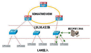 分布式寬帶網(wǎng)管在局端機房放置集中網(wǎng)管監(jiān)控系統(tǒng),在各園區(qū)節(jié)點放置集中網(wǎng)管系統(tǒng),局端網(wǎng)管系統(tǒng)通過園區(qū)網(wǎng)管系統(tǒng)對接入網(wǎng)設(shè)備進(jìn)行管理與監(jiān)控,局端網(wǎng)管系統(tǒng)在對設(shè)備管理的同時側(cè)重對業(yè)務(wù)的管理,園區(qū)網(wǎng)管系統(tǒng)則側(cè)重對接入設(shè)備的管理。此方案的缺點是結(jié)構(gòu)較復(fù)雜,投資成本較高。