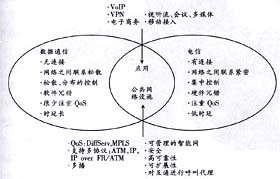 NGN是融合網(wǎng)絡(luò)。數(shù)據(jù)網(wǎng)與電信網(wǎng)曾是兩個有著不同特性的網(wǎng)絡(luò),它們的融合將帶來一系列新的業(yè)務(wù),并對網(wǎng)絡(luò)平臺提出新的要求(見圖1)。因此,NGN的網(wǎng)絡(luò)功能結(jié)構(gòu)如何設(shè)定是我們要關(guān)注的重點。