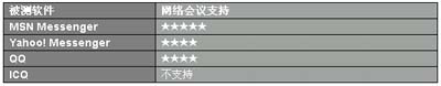 網(wǎng)絡(luò)會議也就是多個人在同一個窗口中發(fā)言,在這一點(diǎn)上無論是人數(shù)和操作簡易程度上MSN無疑是最出色的;Yahoo! Messenger也比較方便,但設(shè)置比較復(fù)雜,點(diǎn)對點(diǎn)的響應(yīng)不如MSN出色。