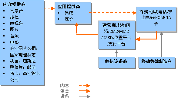 MMS業(yè)務產業(yè)價值鏈的主要環(huán)節(jié)包括網絡運營商,終端,應用提供商,內容提供商等,各環(huán)節(jié)的狀況直接影響著MMS業(yè)務的發(fā)展狀況與市場前景。