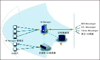 除了這些產(chǎn)業(yè)巨頭以外,巨大的IM管理市場(chǎng)也培育了許多專(zhuān)業(yè)的IM管理廠商。這些廠商的產(chǎn)品可以外掛至大公司的IM服務(wù)平臺(tái),從而為企業(yè)用戶(hù)提供IM管理解決方案。IMlogic就是這樣一家公司,它的IM Manager產(chǎn)品可以管理來(lái)自微軟、雅虎、IBM、AOL以及Jabber等等公司的IM平臺(tái)。