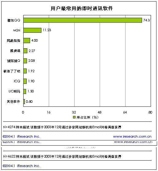 新迎來的2004年對(duì)于中國的互聯(lián)網(wǎng)是充滿無限憧憬的一年,互聯(lián)網(wǎng)用戶打到了近8000萬,在繼短信、網(wǎng)絡(luò)廣告、網(wǎng)絡(luò)游戲成為中國網(wǎng)絡(luò)企業(yè)發(fā)家致富的法寶之后,即時(shí)通訊又將是一塊無限誘惑的領(lǐng)地,成為門戶網(wǎng)站、電信運(yùn)營商展開廝殺的新大陸。