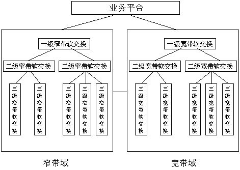 在控制層,軟交換的組網(wǎng)可以有兩種方式,即寬窄帶域分開(kāi)組網(wǎng)方式(見(jiàn)圖3)和寬窄帶混合組網(wǎng)方式(見(jiàn)圖4)。