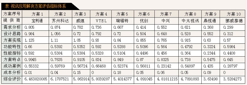 表 視訊應(yīng)用解決方案評估指標(biāo)體系