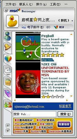 3) 拼接代替加強。現(xiàn)有應(yīng)用的簡單決定了IM軟件本身的簡單,因此IM本身變得不受關(guān)注,廠商所作的大多是功能拼接,例如MSN加強聯(lián)網(wǎng)游戲,QQ傍上移動。甚至可以認為,IM本身已經(jīng)被置于次要位置。