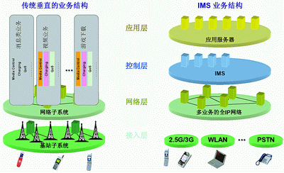 傳統(tǒng)的業(yè)務(wù)結(jié)構(gòu)和IMS業(yè)務(wù)結(jié)構(gòu)比較