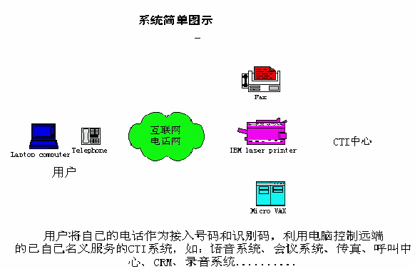 利用用戶現(xiàn)正使用的電話,利用呼叫轉(zhuǎn)移功能與CTI中心連接,為用戶提供以用戶為中心的、個(gè)性化的語音服務(wù)系統(tǒng)。以此增加電信增值業(yè)務(wù),提高電話的有效接通率,提高電信運(yùn)營(yíng)商的效益。