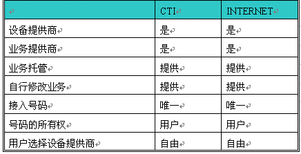 CTI和INTERNET的比較: