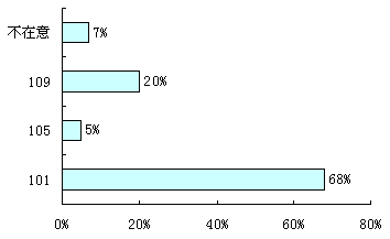 號碼選擇問題在英國內(nèi)政部的文件中已經(jīng)有所建議,其中101因簡單好記而受到重點(diǎn)推薦。為更好地了解公眾意見,Ofcom在調(diào)查中給出了101、105、109三個選擇,在收到的1011份調(diào)查反饋中,68%的意見支持選擇101,109由于與999有一個相同的號碼,支持率也達(dá)20%,如圖1所示。