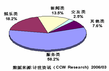 2006年,IVR業(yè)務(wù)的發(fā)展已經(jīng)具備了良好的外部條件。首先,具有龐大的潛在用戶群。有關(guān)統(tǒng)計(jì)顯示,截至2005年11月,中國移動(dòng)用戶數(shù)量達(dá)到3.88億,固定電話用戶數(shù)量達(dá)到3.51億,其中無線市話用戶數(shù)量達(dá)到8622萬。其次,市場容量急劇膨脹;再次,業(yè)務(wù)收入快速增長;最后,IVR不受手機(jī)型號的限制,潛在用戶的普及率極高。這些使得IVR具有良好的發(fā)展?jié)摿,?jì)世資訊(CCW Research)認(rèn)為,IVR是繼短信(SMS)之后的又一座大型金礦。