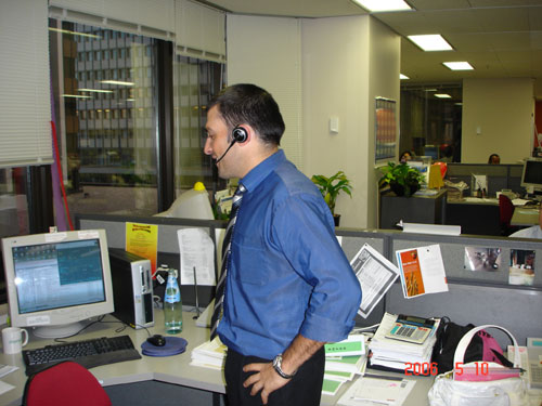 Colonial公司是一家大型的銀行業(yè)務(wù)呼叫中心,座落在悉尼市區(qū)最熱鬧的喬治大街附近,相當(dāng)于我們的上;春B。這里的幾百個(gè)座席分布在寫(xiě)字樓的好幾個(gè)樓面,所有座席都是使用大北歐的無(wú)線(xiàn)耳嘜-GN9120。筆者記得上月去東京參觀(guān)HONDA的呼叫中心,那里只有不到三十個(gè)一線(xiàn)的座席代表使用無(wú)線(xiàn)耳嘜,這里則是所有人都配備了這種先進(jìn)的無(wú)線(xiàn)設(shè)備。筆者看到不少員工站著工作,還有少數(shù)走動(dòng)辦公,員工在座位上可以輕松轉(zhuǎn)身,隨時(shí)調(diào)整姿勢(shì),讓身體處于松弛狀態(tài),這種輕松自如想必電話(huà)線(xiàn)那頭的客戶(hù)也感同身受。呼叫中心的經(jīng)理Venessa告訴筆者,這里的服務(wù)內(nèi)容比較豐富,對(duì)員工的業(yè)務(wù)能力要求很高,所以他們?yōu)閱T工提供一流的工作環(huán)境以減少人員流失率,降低招聘和培訓(xùn)成本,提高客戶(hù)滿(mǎn)意度。