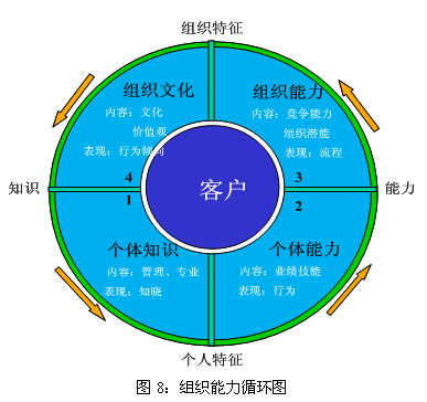 組織能力循環(huán)圖說明,管理者不僅要關(guān)注對組織中個(gè)體層次特性的管理,如個(gè)體知識、個(gè)體能力,更要關(guān)注組織層次特性的管理,如組織能力和企業(yè)文化。只有管理者將目光由個(gè)體能力轉(zhuǎn)向組織能力時(shí),即更注重組織層次的能力建設(shè)時(shí),組織才會真正地成長和發(fā)展。