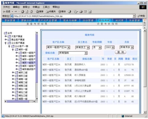 作為電信營銷服務(wù)支撐系統(tǒng),其主要功能是支撐營銷人員開展?fàn)I銷活動(dòng),并通過功能完善的考核系統(tǒng)幫助各級人員進(jìn)行工作管理。本系統(tǒng)可以對KPI指標(biāo)進(jìn)行靈活的設(shè)定,可以靈活定義多種參與考核的數(shù)據(jù)來源,使得各級主管能夠?qū)蛻艚M、社區(qū)(商業(yè)客戶區(qū)、農(nóng)村統(tǒng)包區(qū))的營銷服務(wù)工作進(jìn)行考核評分?己酥芷诳梢酝ㄟ^參數(shù)進(jìn)行設(shè)定(一般以月為單位)。