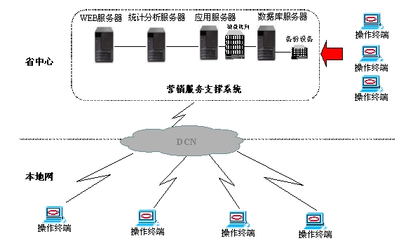 采用全省集中方式建設(shè)的營銷服務(wù)支撐系統(tǒng)由兩臺IBM服務(wù)器形成雙機(jī)集群,安裝了數(shù)據(jù)庫服務(wù)器、WEB服務(wù)器、應(yīng)用服務(wù)器、統(tǒng)計(jì)分析服務(wù)器。