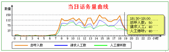 3.3 呼叫監(jiān)控。系統(tǒng)隨時提供話務曲線,反映95598熱線整體的服務水平,如下圖: