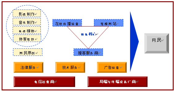 對于互聯(lián)網(wǎng)來講,網(wǎng)絡(luò)視頻代表網(wǎng)絡(luò)內(nèi)容展現(xiàn)形式的變革,而這種變革將帶動一個產(chǎn)業(yè)鏈條的發(fā)展,同時產(chǎn)業(yè)鏈條各個環(huán)節(jié)也會反過來制約網(wǎng)絡(luò)視頻的發(fā)展。2006年以前的中國網(wǎng)絡(luò)視頻發(fā)展處于一個初級階段,聚集網(wǎng)民注意力,形成網(wǎng)民對網(wǎng)絡(luò)視頻內(nèi)容的瀏覽習(xí)慣是這個階段網(wǎng)絡(luò)視頻發(fā)展的核心。但是因?yàn)樯虡I(yè)模式的不成熟,網(wǎng)絡(luò)視頻盈利能力弱的基本原因,產(chǎn)業(yè)鏈條中的多個環(huán)節(jié)都成了抑制網(wǎng)絡(luò)視頻發(fā)展的因素。例如:寬頻形式對網(wǎng)絡(luò)資源的要求一方面加大了寬頻內(nèi)容運(yùn)營的成本,另一方面對網(wǎng)民終端的網(wǎng)絡(luò)條件要求也明顯高于以前的網(wǎng)絡(luò)條件,而這些問題要求電信運(yùn)營商既要降低基礎(chǔ)網(wǎng)絡(luò)資源的價格又要提高網(wǎng)絡(luò)資源的質(zhì)量,這些工作和讓步短時間內(nèi)電信運(yùn)營商很難完成,寬頻內(nèi)容運(yùn)營商的運(yùn)營成本就保持居高不下而網(wǎng)民的網(wǎng)絡(luò)視頻效果就差強(qiáng)人意了。像這樣充滿著矛盾因素的抑制環(huán)節(jié)在整個產(chǎn)業(yè)鏈條中還有很多,因此2006年以前的中國網(wǎng)絡(luò)視頻發(fā)展沒有突破產(chǎn)業(yè)束縛進(jìn)入發(fā)展的快車道。