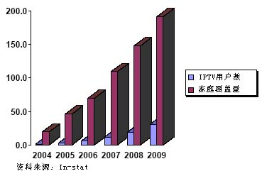 圖1世界范圍IPTV市場預(yù)測(單位:百萬)
