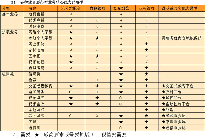 表1說明了各種業(yè)務(wù)形態(tài)與核心能力的關(guān)系。需要提及的是,應(yīng)用類中的業(yè)務(wù)往往需求其他業(yè)務(wù)平臺的支持,此時,也就要求業(yè)務(wù)管理系統(tǒng)升級為綜合的業(yè)務(wù)管理系統(tǒng)。