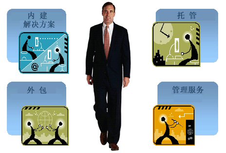 內(nèi)建——作為終端用戶的企業(yè)從供應(yīng)商那里購買一個(gè)解決方案然后安裝在自己那里。系統(tǒng)可以由終端用戶自己,咨詢顧問公司或者供應(yīng)商來安裝。一旦系統(tǒng)安裝完畢之后終端用戶就可以自己管理它或者由管理服務(wù)提供商(通常是咨詢顧問公司或者外包商)進(jìn)行管理。
