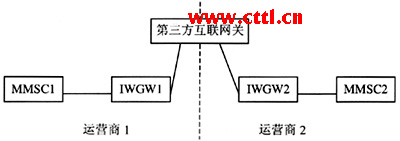 圖1 點(diǎn)對點(diǎn)多媒體消息業(yè)務(wù)網(wǎng)間互聯(lián)網(wǎng)絡(luò)結(jié)構(gòu)示意圖