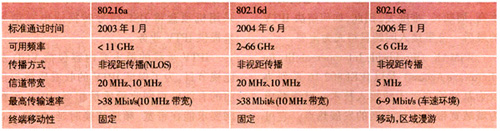 表1 802.16系統(tǒng)各標(biāo)準(zhǔn)特點(diǎn)