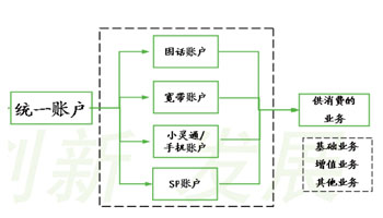 由于目前我國的信用體系尚不完善,所以,電信企業(yè)自身需要首先完善企業(yè)級的客戶信用體系,而設立統(tǒng)一實名制賬戶是完善客戶信用體系的有效途徑。首先,建立實名制賬戶便于固網(wǎng)運營商構(gòu)建相對完整、準確的客戶信息資料庫。其次,通過建立統(tǒng)一賬戶,可以將目前彼此孤立的固定電話、小靈通、寬帶、未來的手機業(yè)務及增值業(yè)務等各子消費賬戶相關聯(lián),從而方便運營商建立客戶業(yè)務記錄,以及對多消費賬戶進行統(tǒng)一的信用管理。第三,運營商可以針對統(tǒng)一賬戶的消費總額提供積分獎勵,增加用戶黏度。統(tǒng)一賬戶與各消費賬戶的關聯(lián)關系如圖4所示。
