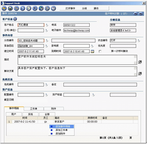 圖:添加事件明細來記錄采取的服務(wù)支持動作