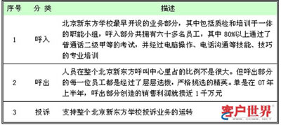 北京新東方學校呼叫中心在1999年還只是3部咨詢電話,不到10名工作人員。到今年,已經擁有36個座席以及72名經過專業(yè)培訓的座席代表,平均每日接聽3500通電話。