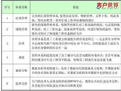 北京新東方呼叫中心的運營體制主要分為三個部分和六大體系。
