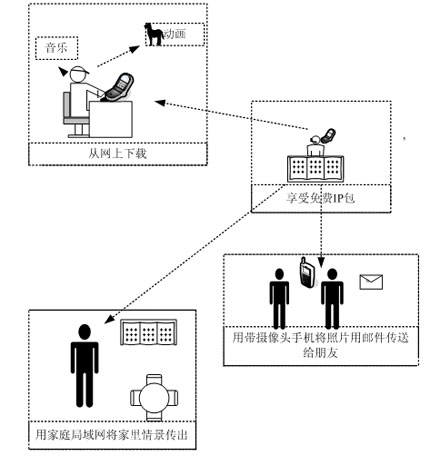 DoCoMo公司網(wǎng)里現(xiàn)有這類手機共37種),通過無線方式與免費IP包傳輸中繼器相連,免費IP包傳輸中繼器通過以太網(wǎng)經(jīng)過寬帶路由器或通過PPPoE(Point