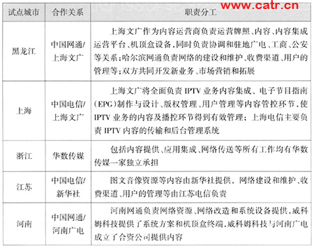 表1 我國典型IPTV試點城市合作