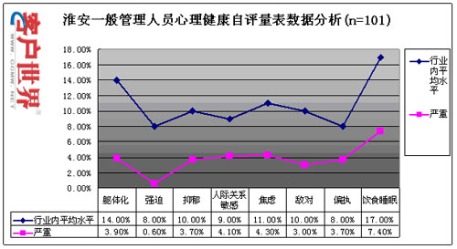 目前,員工壓力和心理健康情況已成為困擾整個(gè)行業(yè)的主要問題之一,我們通過(guò)專業(yè)方法對(duì)淮安中心的員工心理健康和壓力狀況進(jìn)行了科學(xué)的測(cè)量,以了解該中心員工的壓力和心理健康狀況,具體測(cè)量數(shù)據(jù)如下:
