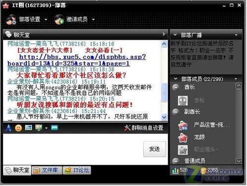 在群聊的過程中兩款軟件都各特色。百度Hi的特色是當(dāng)用戶向群中一個(gè)不是自己好友的人發(fā)送信息時(shí),該用戶會(huì)在百度網(wǎng)頁短信息中可以收到消息,此項(xiàng)功能十分適合上班時(shí)不能打開聊天軟件的朋友使用。Lava則是將群功能體現(xiàn)的更加強(qiáng)大些,除了消息發(fā)送外可以建立屬于群部落的文件庫,就是這個(gè)部落的藏寶室,有什么好東東都可以放進(jìn)去,簡直就是超大的網(wǎng)絡(luò)硬盤。(圖9、圖10)