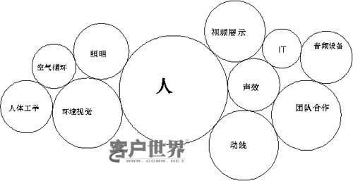 我們“以人為本”的出發(fā)點(diǎn),相信能夠得到您的認(rèn)同。但是空間中所包含的元素還是非常的復(fù)雜。即使在我們內(nèi)部編寫(xiě)的《呼叫中心營(yíng)建白皮書(shū)》中,就呼叫中心空間設(shè)計(jì)的要點(diǎn)一項(xiàng),就有15個(gè)方面之多,相信以后隨著經(jīng)驗(yàn)和需求的變化,還會(huì)有所增加。