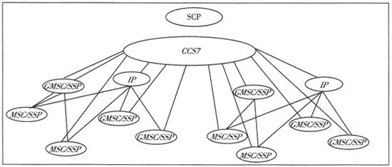 移動(dòng)智能網(wǎng)的組網(wǎng)有多種方案,目前傾向的組網(wǎng)方案是通過OVERLAY方式,在不改變現(xiàn)有移動(dòng)通信網(wǎng)的條件下,通過增加有限的SSP,利用特殊號(hào)碼段觸發(fā)智能業(yè)務(wù)的方式來實(shí)現(xiàn)全網(wǎng)開通智能業(yè)務(wù)的目的。而目標(biāo)網(wǎng)方式則要求把所有MSC端局都升級(jí)成為具有SSF功能的MSC,通過用戶登記的業(yè)務(wù)簽單信息來觸發(fā)智能業(yè)務(wù)。其目標(biāo)網(wǎng)的組網(wǎng)圖如圖3所示。
