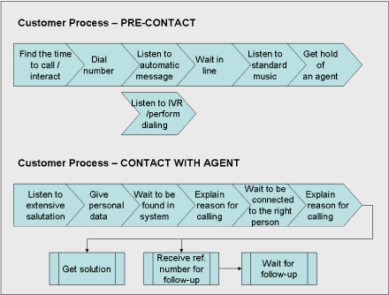 那么,從企業(yè)內(nèi)部的觀點(diǎn)出發(fā)看我圍繞這次簡(jiǎn)單的預(yù)定流程所產(chǎn)生的總體客戶(hù)體驗(yàn)如何呢?這需要好好評(píng)估,我一共只打了兩次電話(huà)并在24小時(shí)內(nèi)得到解決,而且我們之間的互動(dòng)——很有可能——已經(jīng)被記錄在航空公司的CRM系統(tǒng)中。但是如果你問(wèn)問(wèn)作為客戶(hù)的我,我會(huì)給出一個(gè)完全不同的場(chǎng)景描述:首先,提供給我的可聯(lián)絡(luò)電話(huà)號(hào)碼實(shí)在太多了,其次,沒(méi)有說(shuō)明這些電話(huà)號(hào)碼處理的“范圍”各是什么,再次代理質(zhì)量不合格,她完全不知道自己該干什么,還得求助于另外一個(gè)同事,最后,也是很重要的一點(diǎn),最終提交的解決方法并不能讓人接受。這些信息——或者說(shuō)的更準(zhǔn)確些,客戶(hù)的評(píng)價(jià)——出現(xiàn)在呼叫中心的報(bào)告里了嗎?出現(xiàn)在哪兒?沒(méi)有,這一方面是因?yàn)榱鞒滩⒉皇且钥蛻?hù)為中心的觀點(diǎn)來(lái)定義的,另一方面因?yàn)槲覀兪侨耍覀兣Φ脑诠ぷ,不希望自己變成透明人?