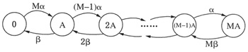 其中,N為視頻流業(yè)務源的集合數(shù),M為視頻流業(yè)務量化的級別數(shù)。本文假設N=1,M=8。處于jA狀態(tài)的流業(yè)務用戶的傳輸速率為jRbbit/s[5],其中j∈(0,1,…,M)。
