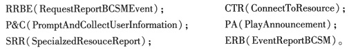 從分布功能平面觀察,每個(gè)業(yè)務(wù)分支對(duì)應(yīng)了一段CAP消息流。預(yù)付費(fèi)用戶查詢業(yè)務(wù)流程是移動(dòng)智能網(wǎng)中比較典型的一個(gè)業(yè)務(wù),300業(yè)務(wù)的主要流程是:用戶撥接入碼,撥語(yǔ)言位,選擇流程,報(bào)余額,通話結(jié)束掛機(jī)等。CAP的消息流引起自動(dòng)機(jī)的狀態(tài)轉(zhuǎn)移從而觸發(fā)下列消息事件,為簡(jiǎn)單起見,我們?cè)趫D例中使用消息的縮寫,具體消息縮寫如下: