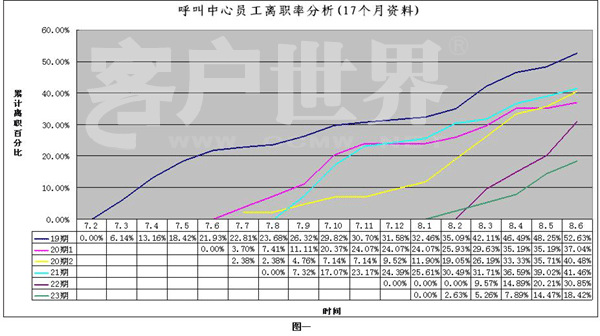 員工流失率控制,在行業(yè)內(nèi)困惑著不少中心領(lǐng)導(dǎo)。業(yè)內(nèi)專家集中精力,采取各種措施,試圖減少流失率對服務(wù)中心成本的影響。為此,本項目組對某客戶服務(wù)中心員工5期新員工進行了17個月的數(shù)據(jù)采集、分析,涉及近200名離職員工的信息分析。從時間變量角度,對新員工內(nèi)心體驗進行闡述,并分析此考察期間,員工負性情緒、工作事件、經(jīng)歷體驗與促使員工離職行為之間的關(guān)系,建立針對問題的性質(zhì),制定干預(yù)策略。本設(shè)想建立在針對員工培訓(xùn)體系進行優(yōu)化,減少已發(fā)現(xiàn)的新員工離職原因?qū)θw員工的影響,從而實際的減少員工流失、工作低績效現(xiàn)象,達到提高組織績效的目的。